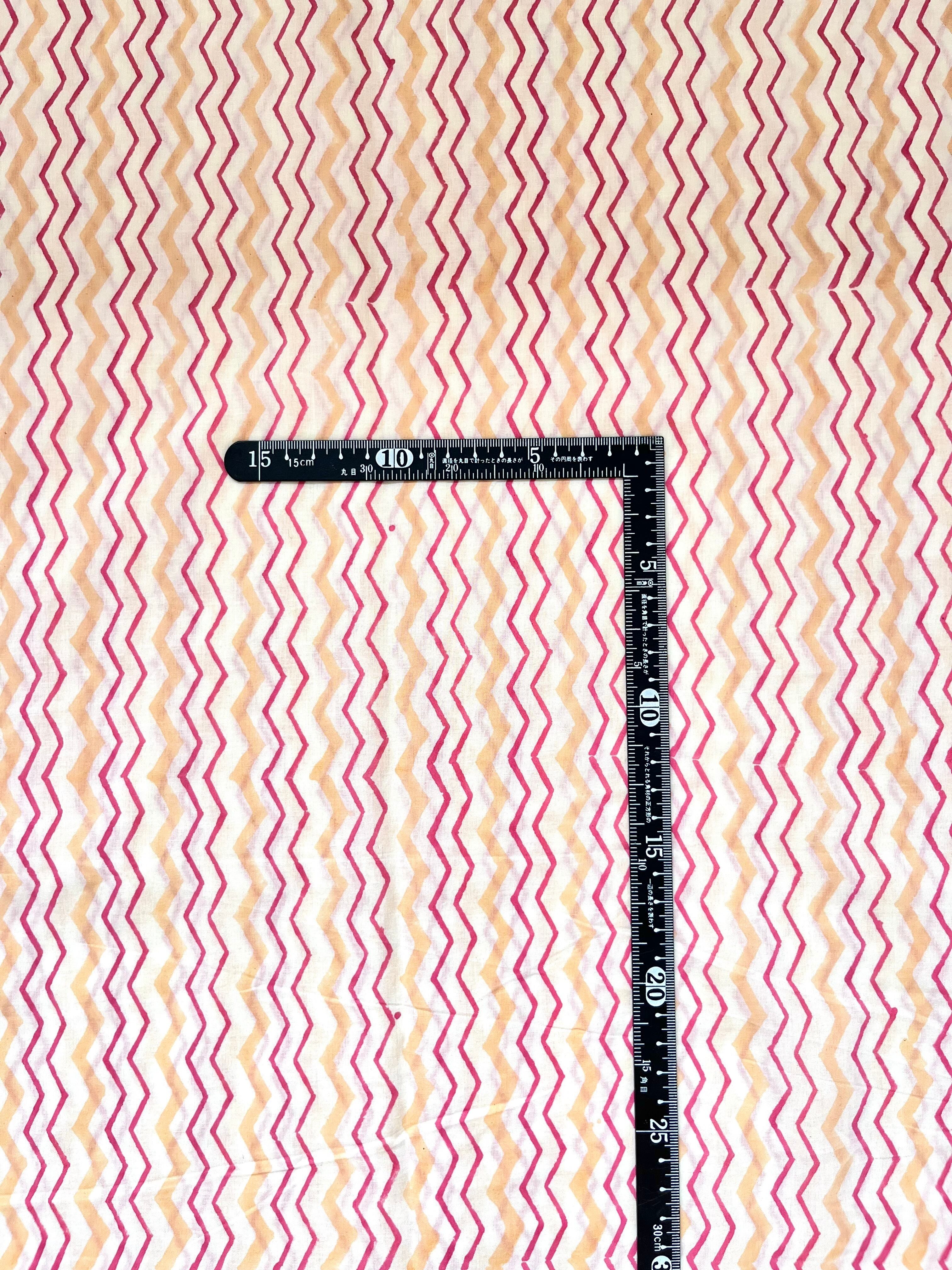 インド職人が木版を押し当て色柄を重ねて作っていくインドの伝統的な技法です。