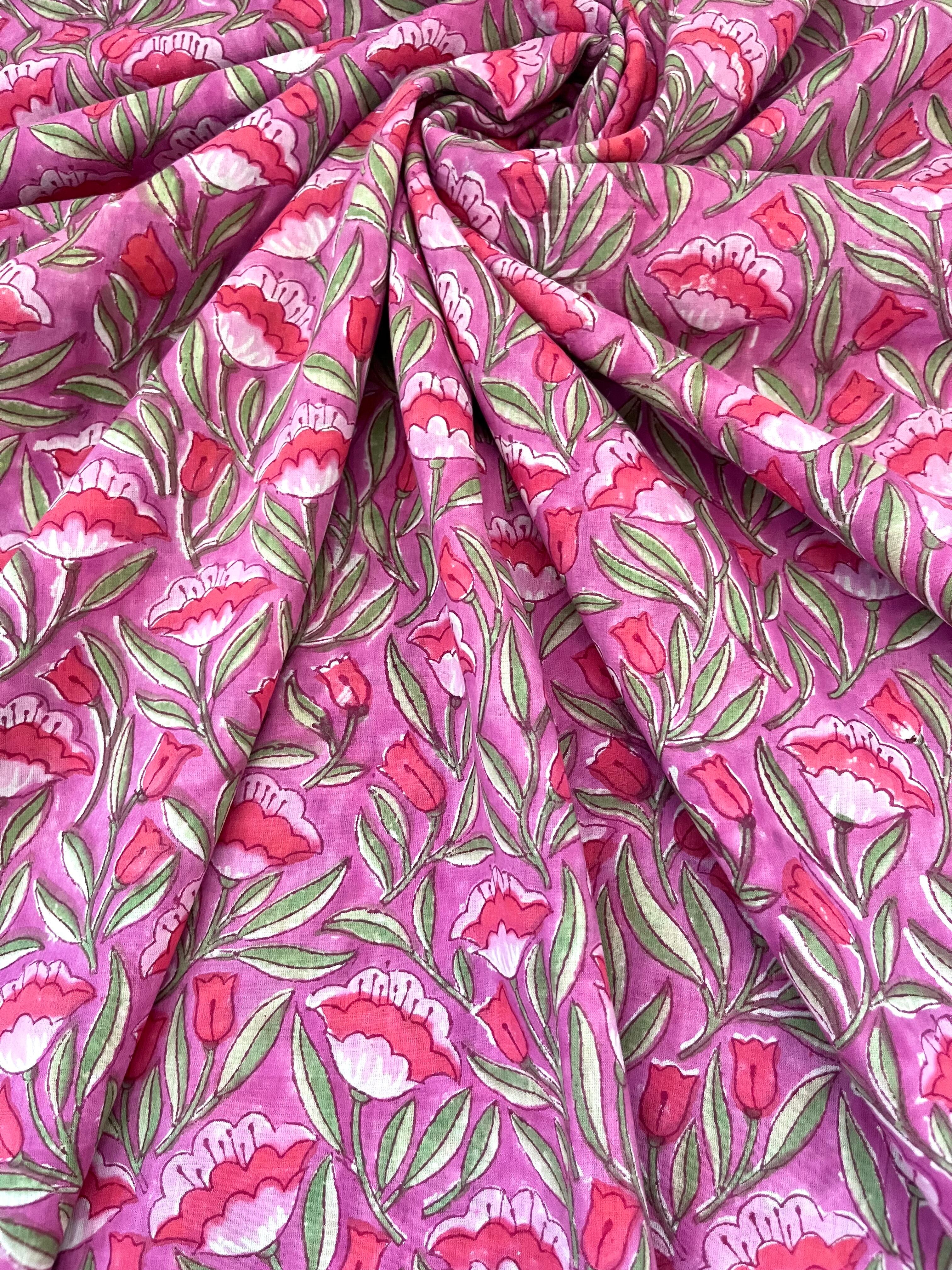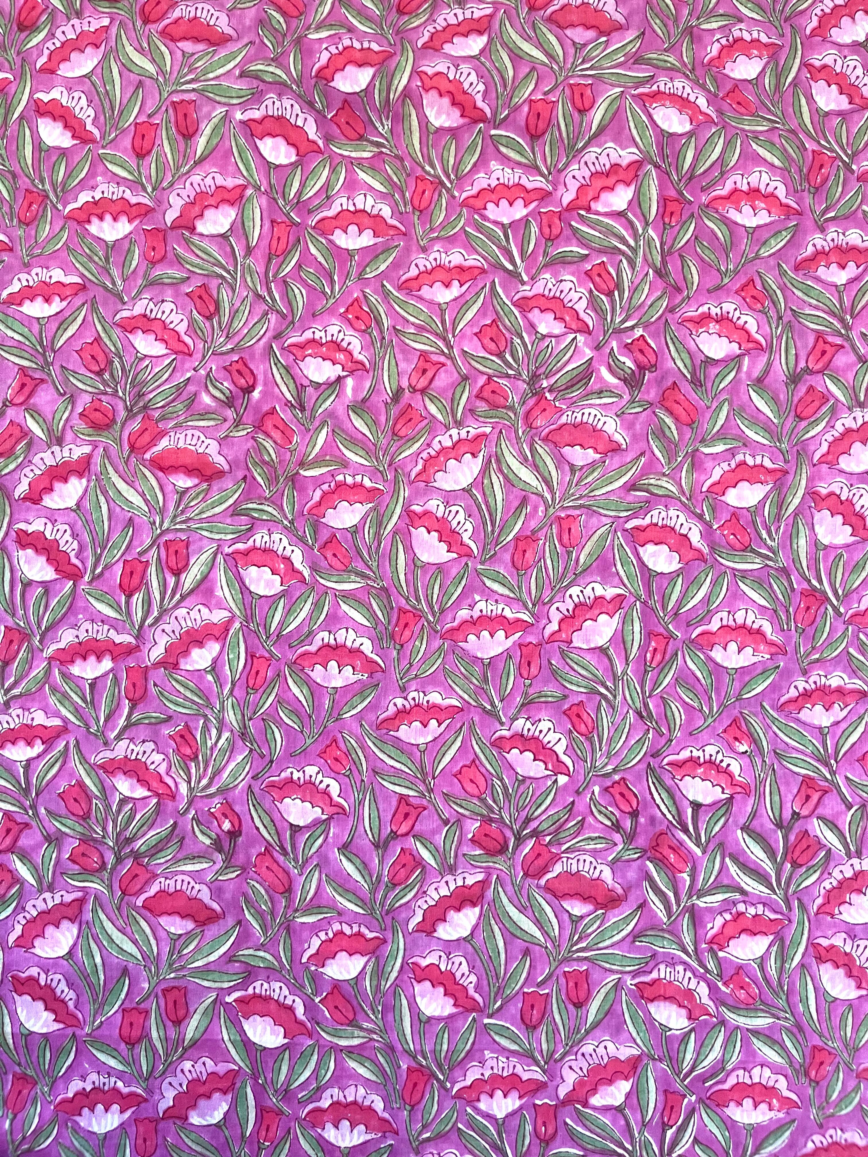 産地インドの伝統的な手法であるハンドブロックプリントを施した、素敵な一枚。