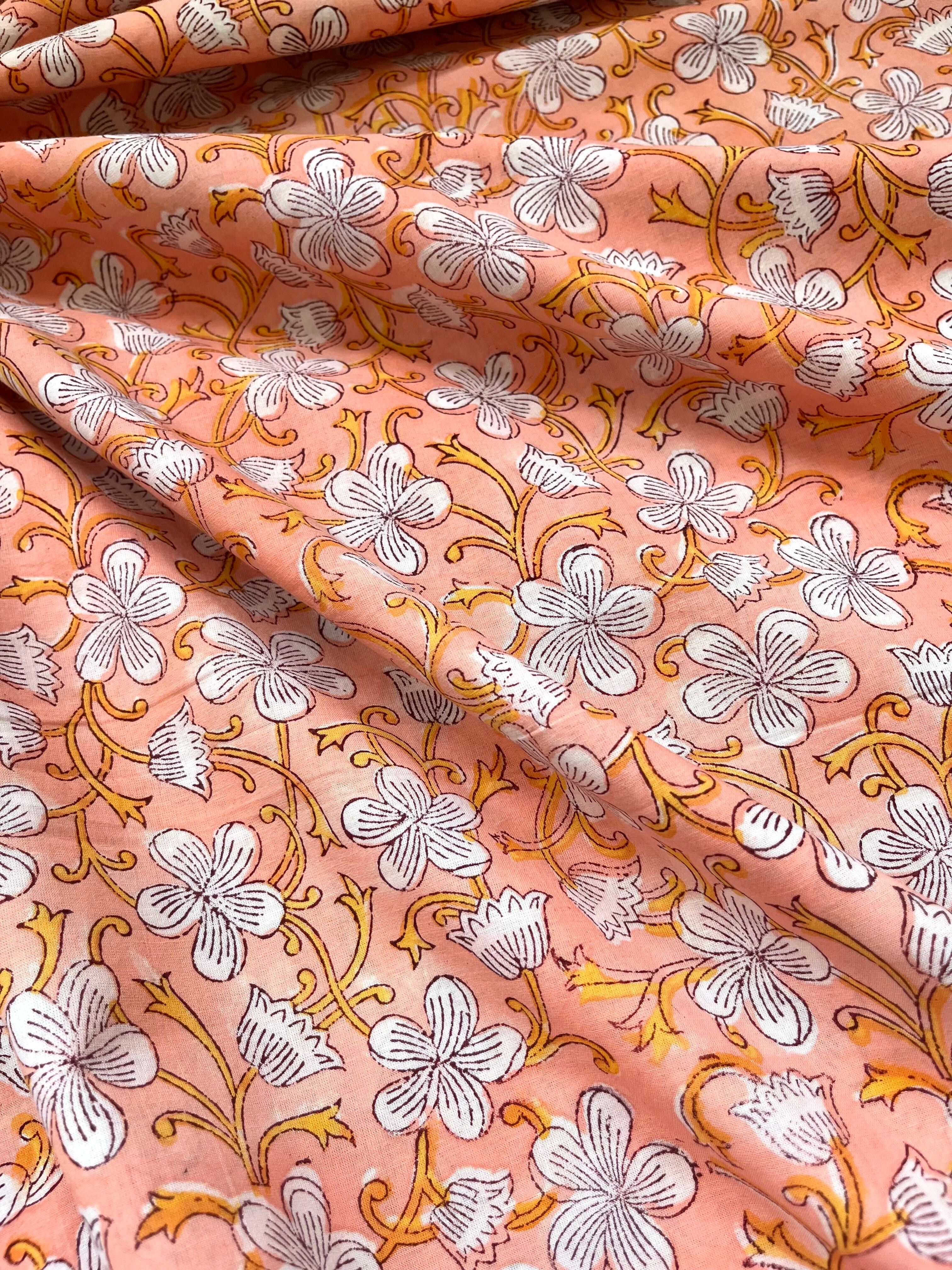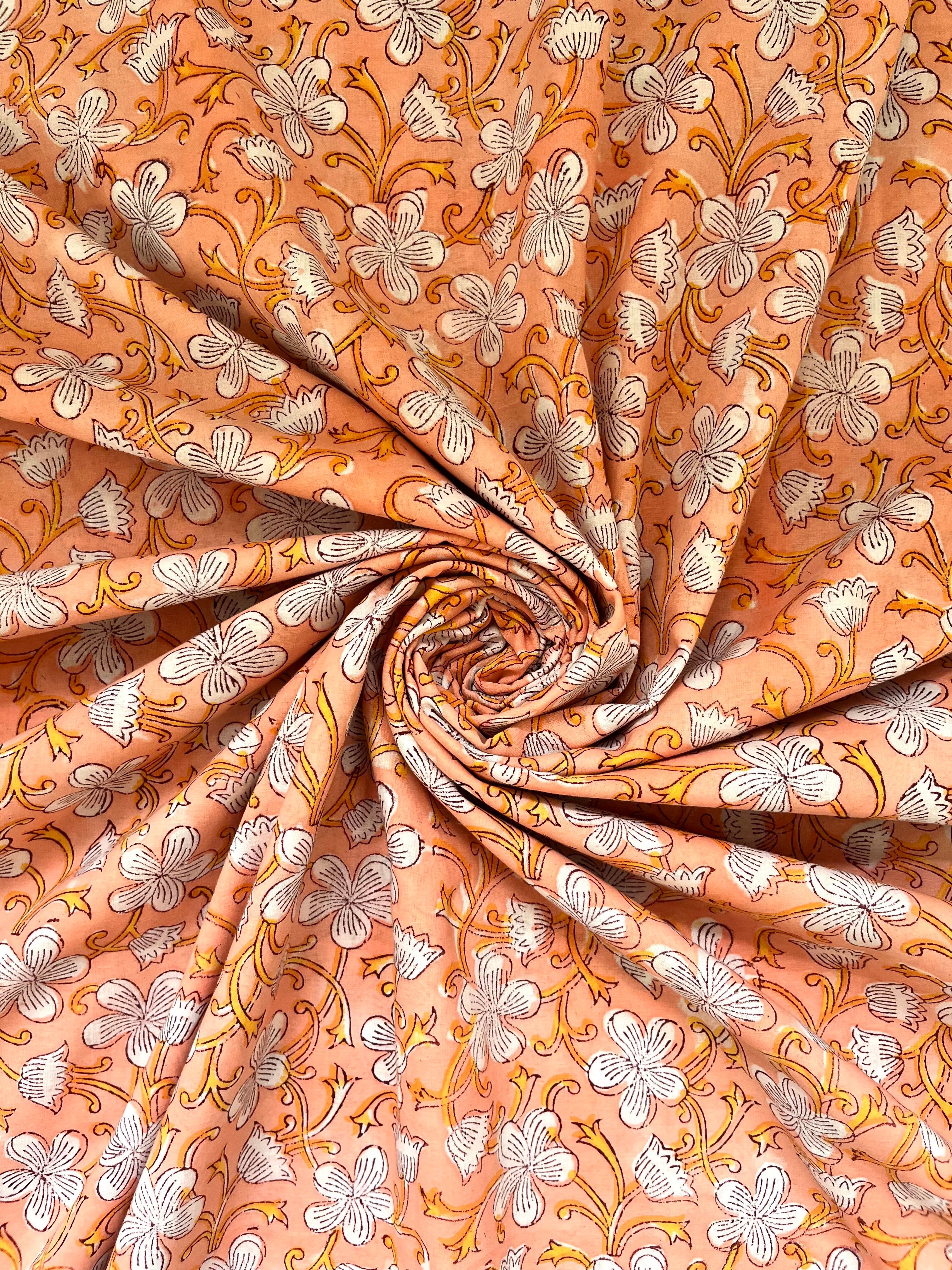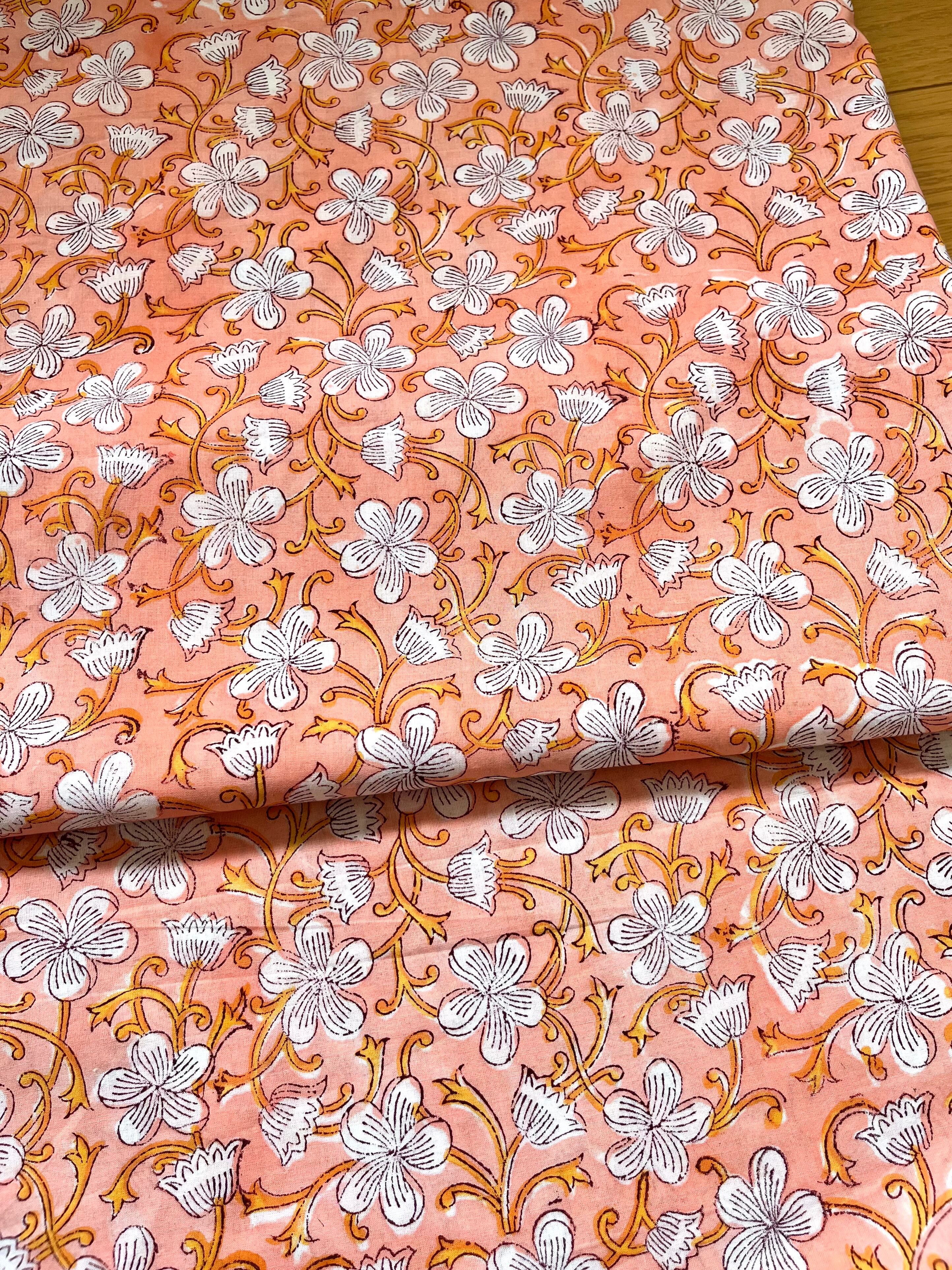 インド職人が木版を押し当て色柄を重ねて作っていくインドの伝統的な技法です。