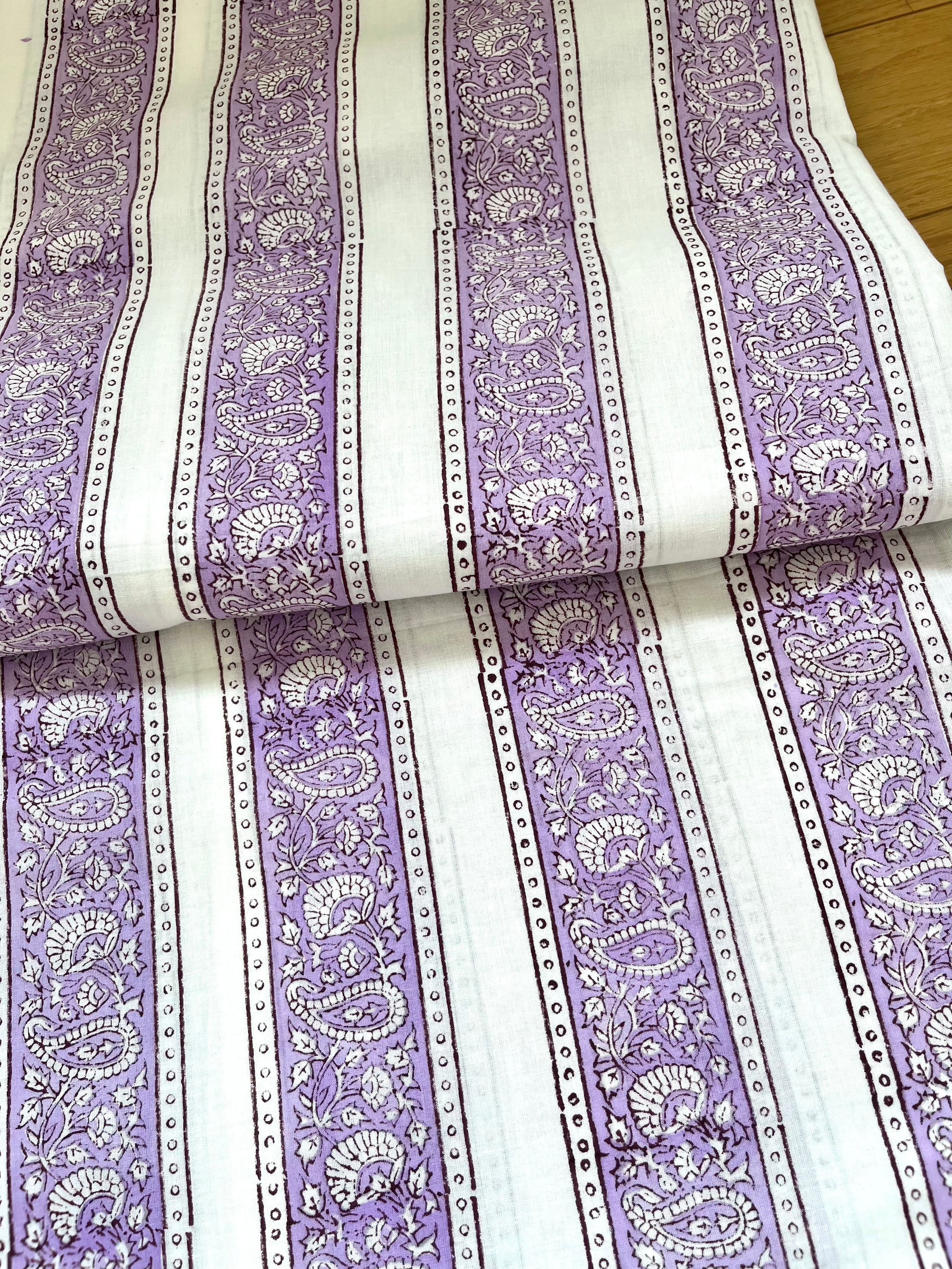 インド職人が木版を押し当て色柄を重ねて作っていくインドの伝統的な技法です。