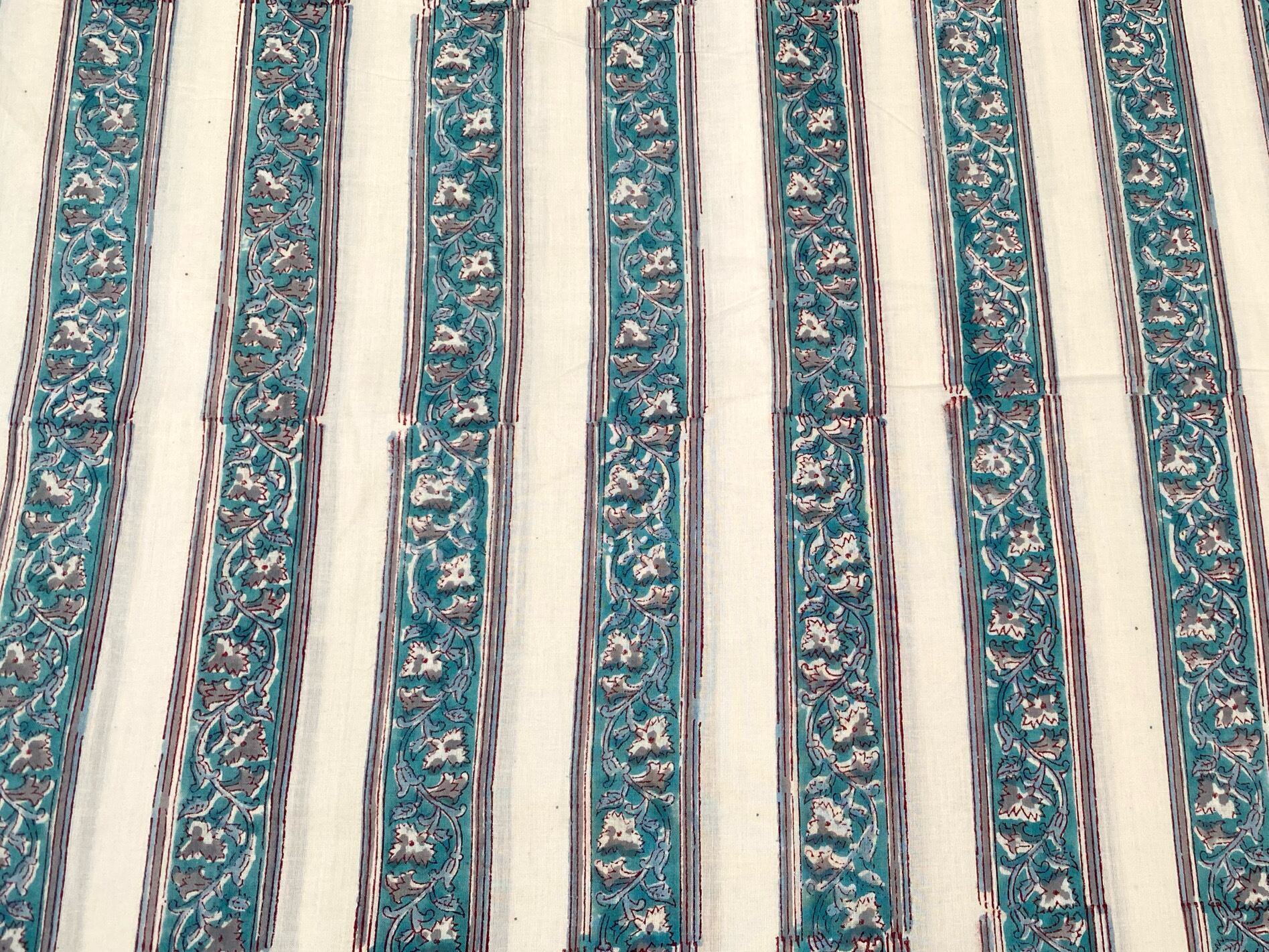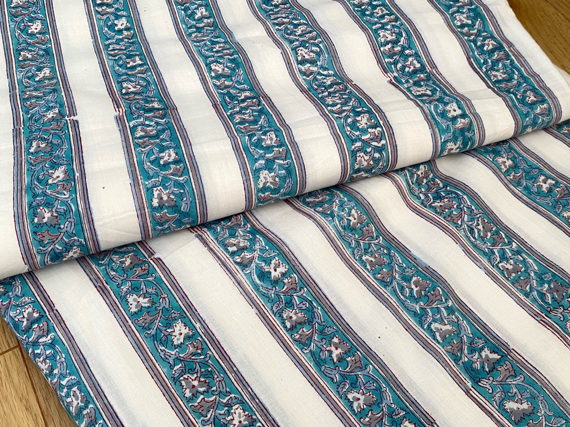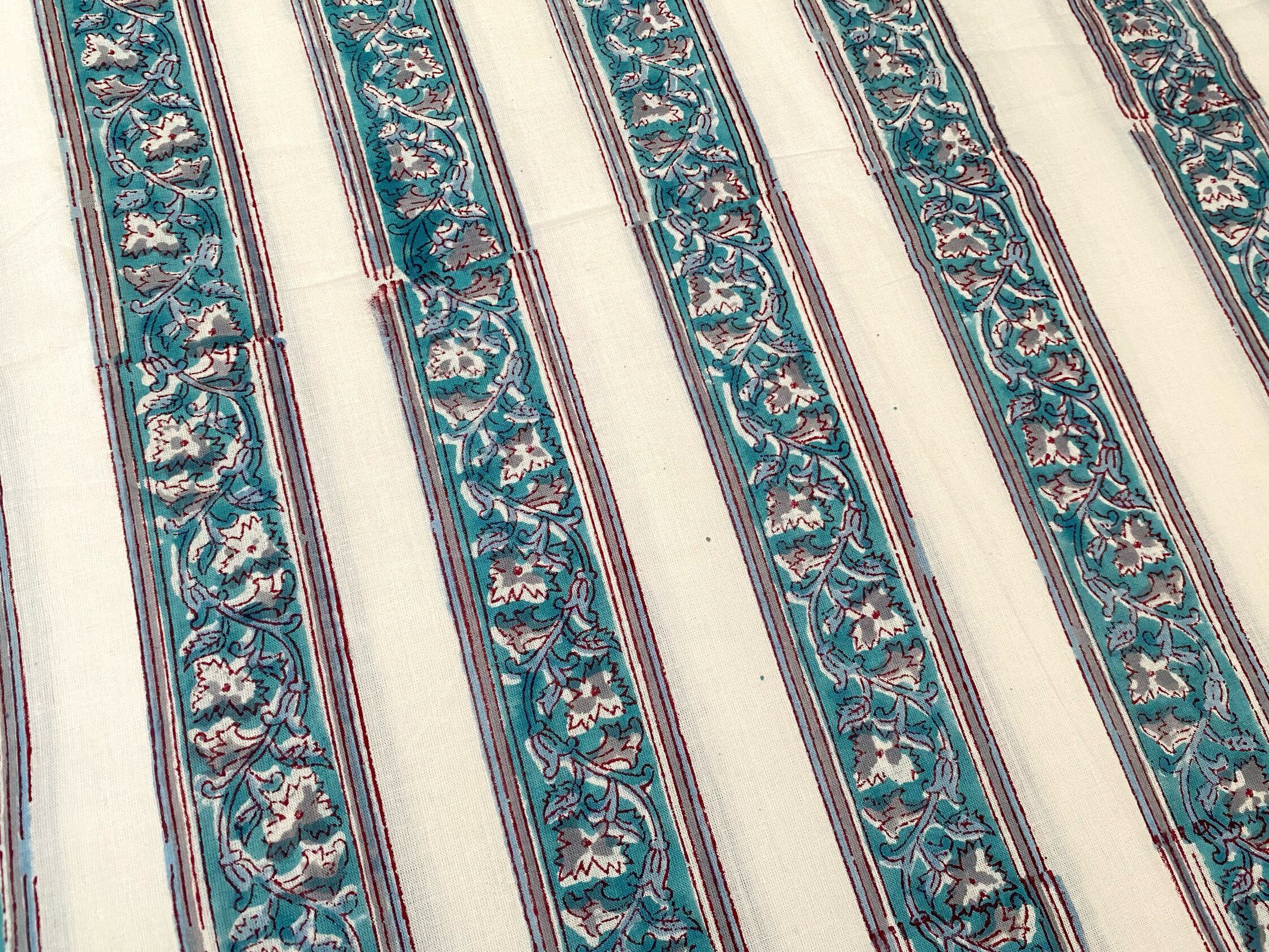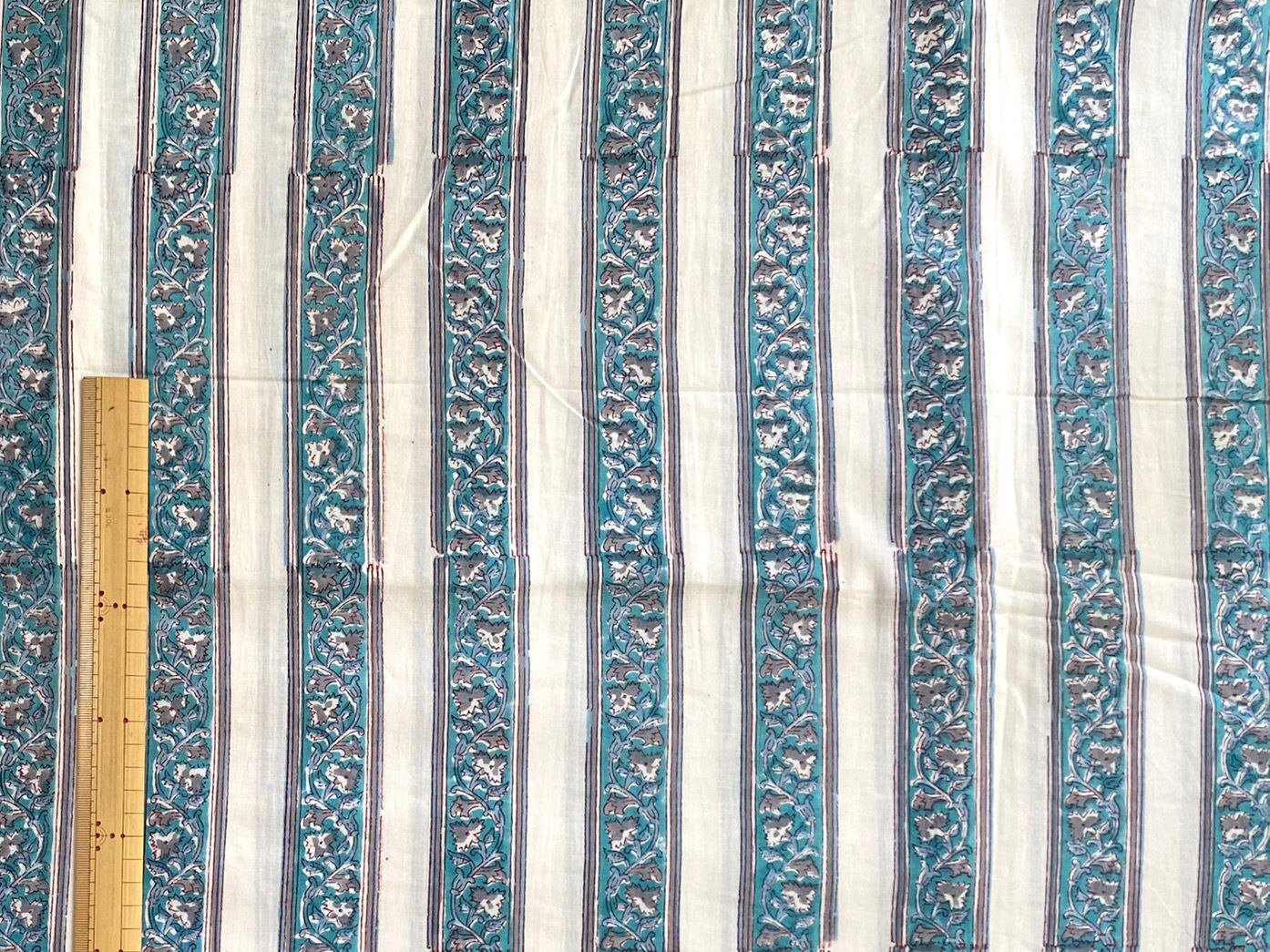 インド職人が木版を押し当て色柄を重ねて作っていくインドの伝統的な技法です。