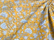 インド職人が木版を押し当て色柄を重ねて作っていくインドの伝統的な技法です。