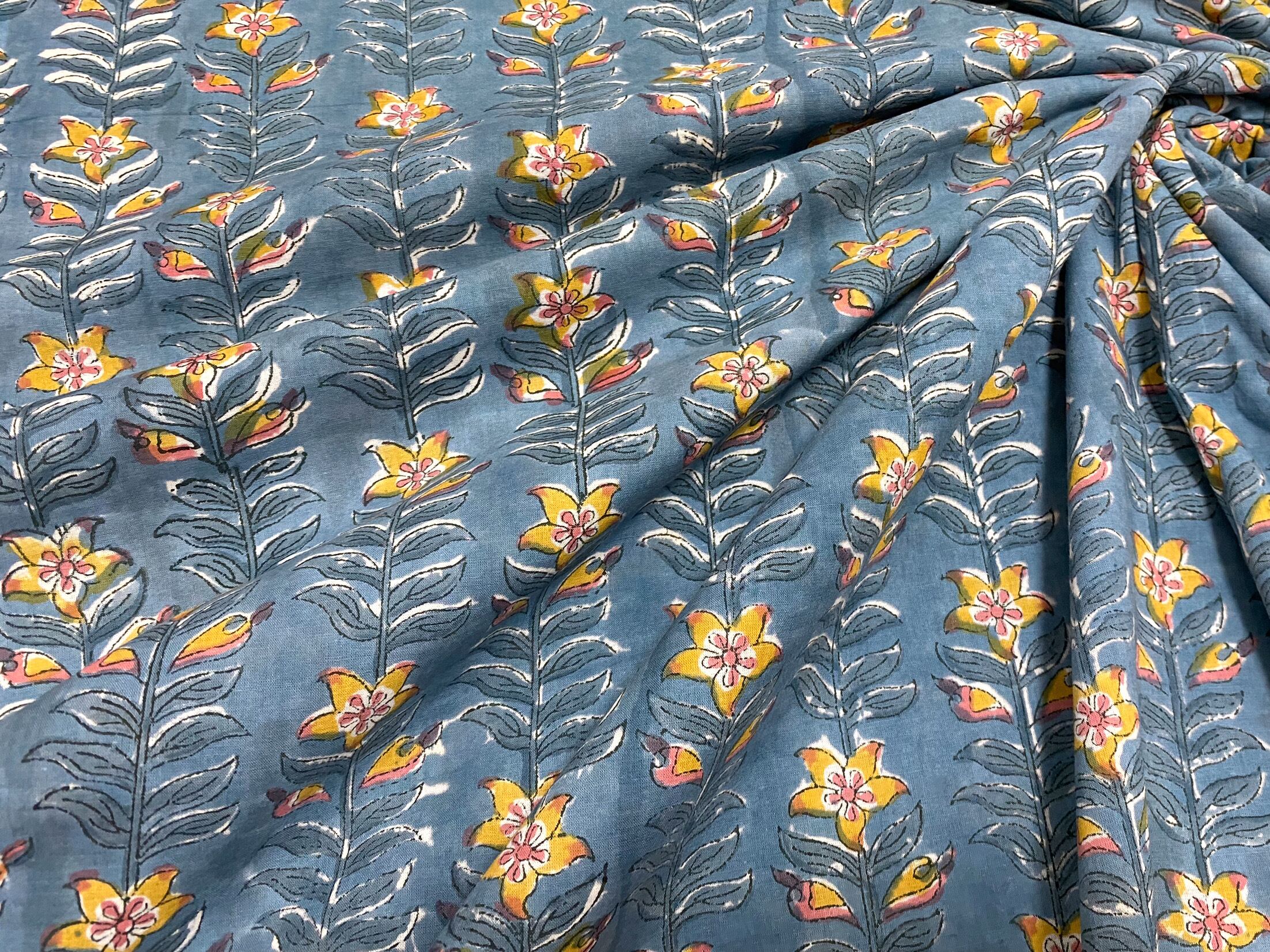 インド職人が木版を押し当て色柄を重ねて作っていくインドの伝統的な技法です。