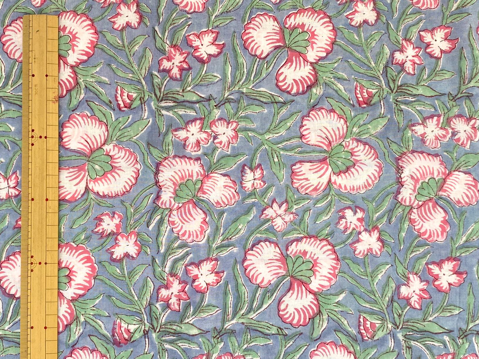 インド職人が木版を押し当て色柄を重ねて作っていくインドの伝統的な技法です。