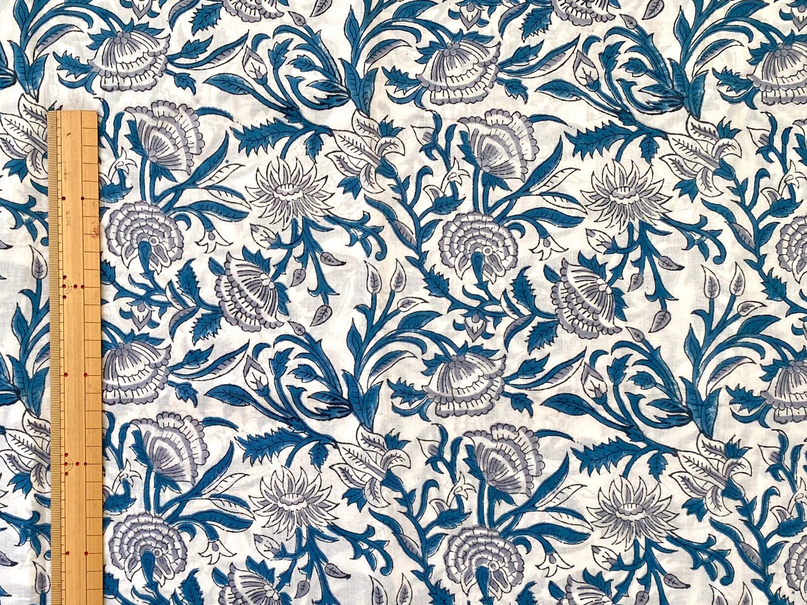 インド職人が木版を押し当て色柄を重ねて作っていくインドの伝統的な技法です。