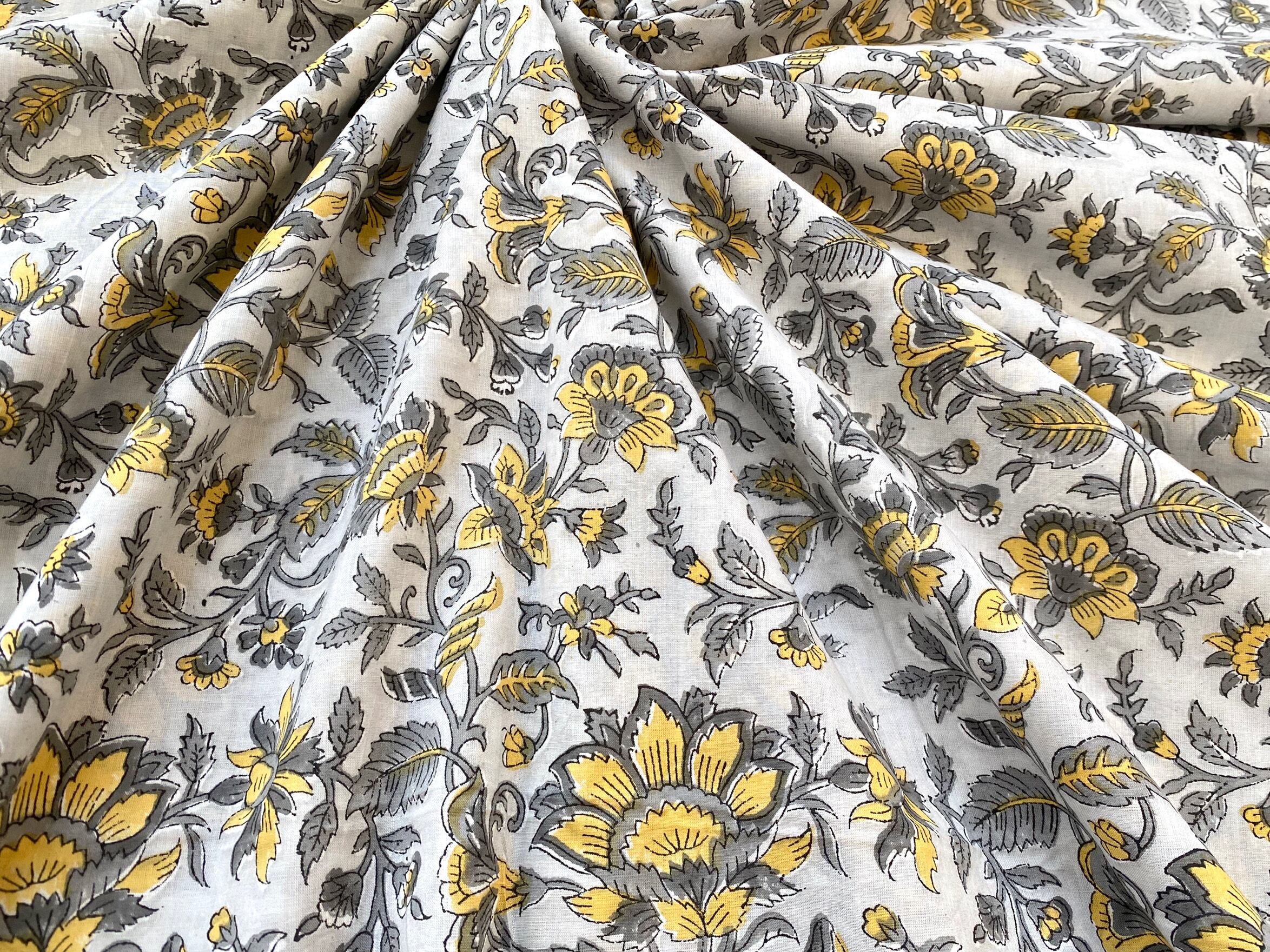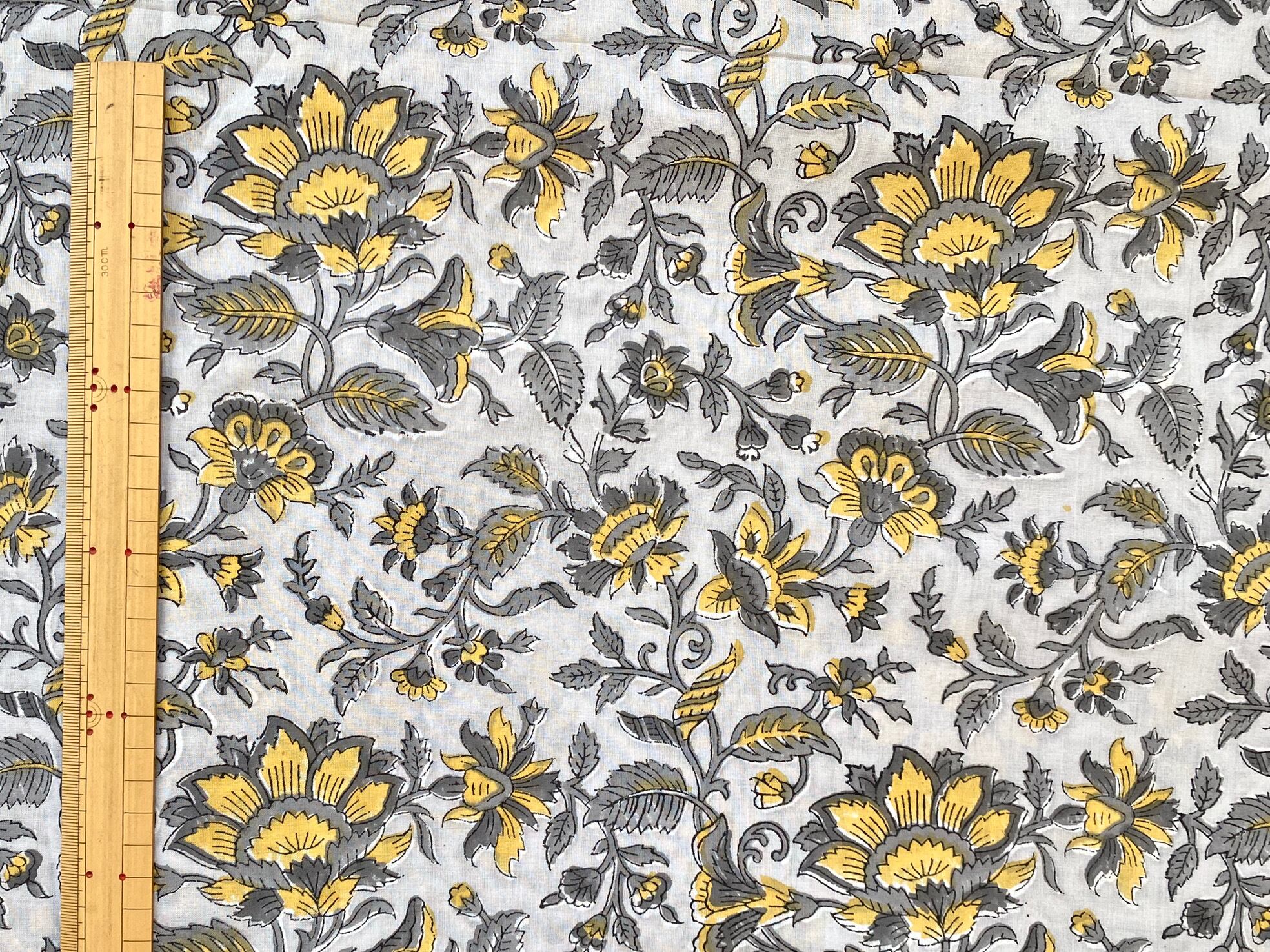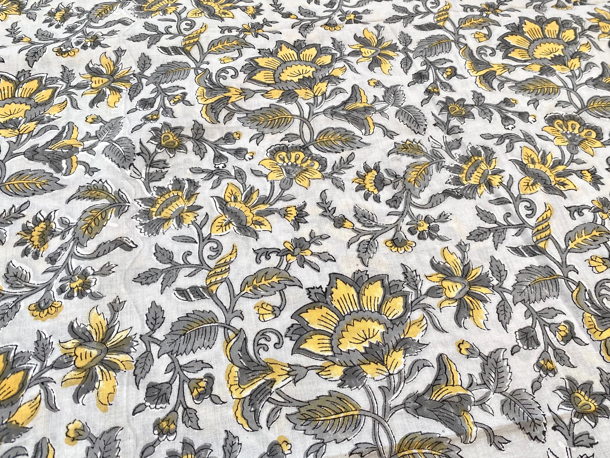 インド職人が木版を押し当て色柄を重ねて作っていくインドの伝統的な技法です。