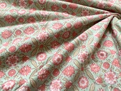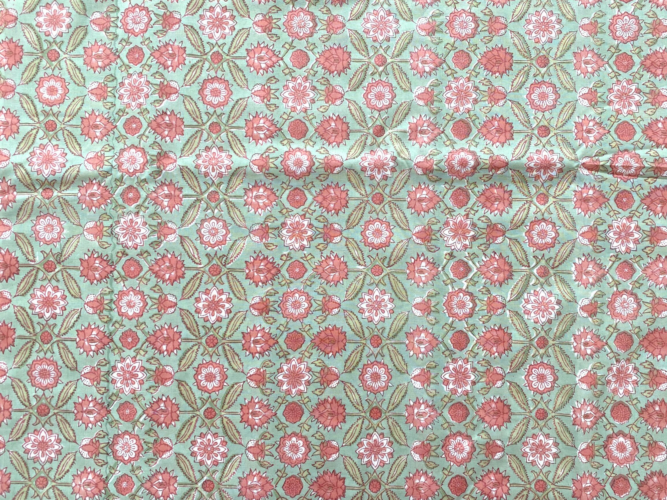 インド職人が木版を押し当て色柄を重ねて作っていくインドの伝統的な技法です。