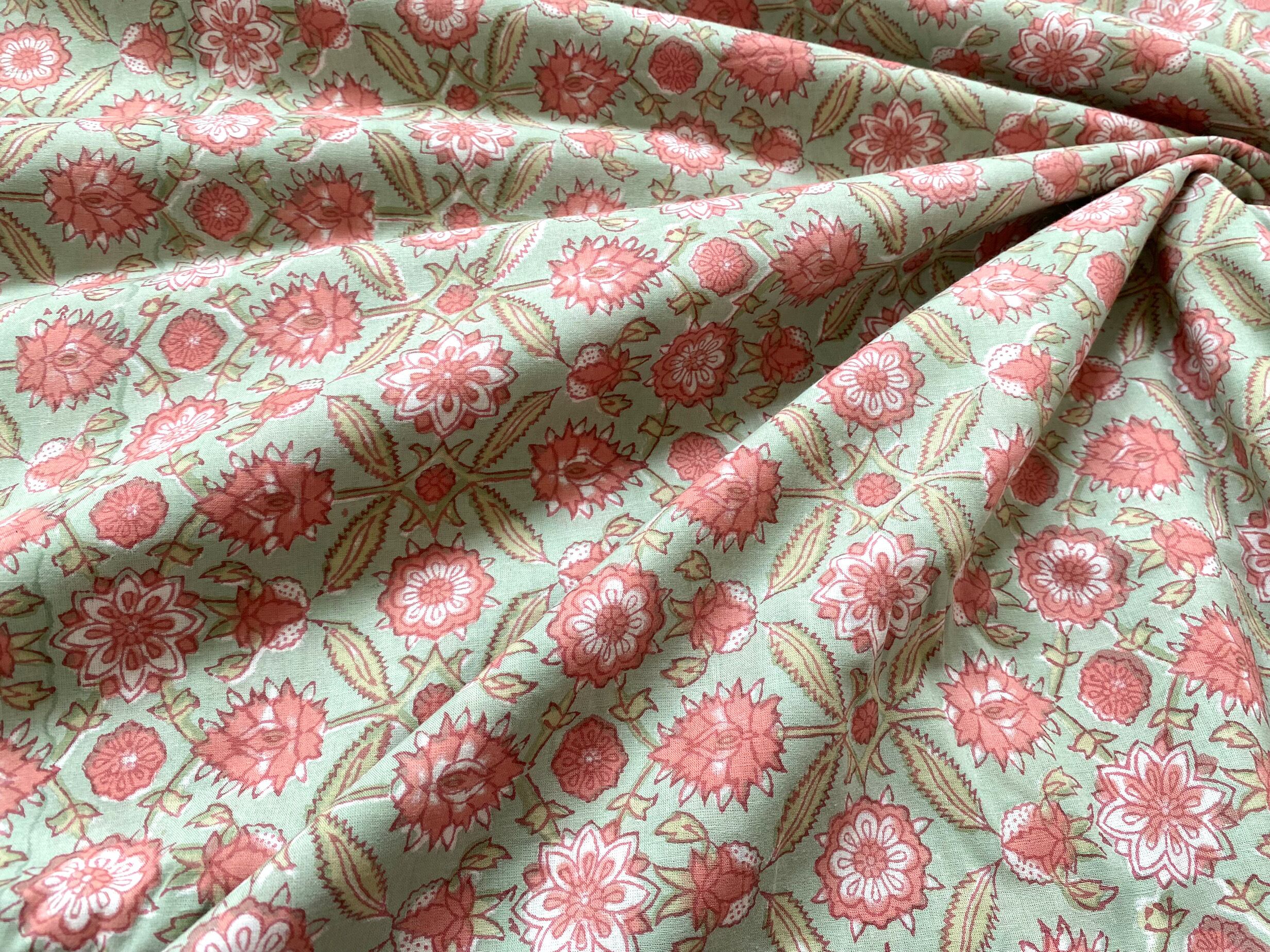 産地インドの伝統的な手法であるハンドブロックプリントを施した、素敵な一枚。