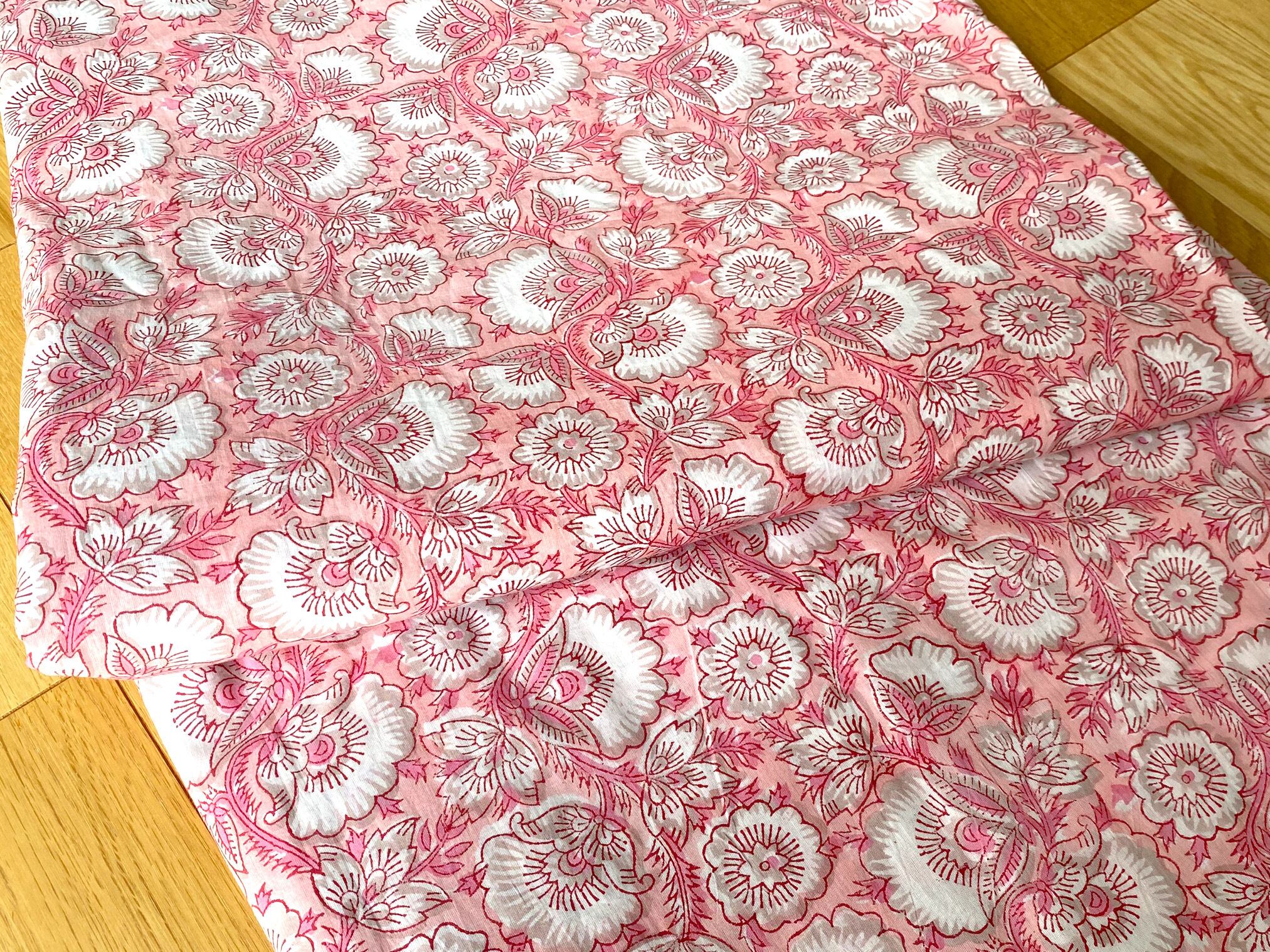 産地インドの伝統的な手法であるハンドブロックプリントを施した、素敵な一枚。