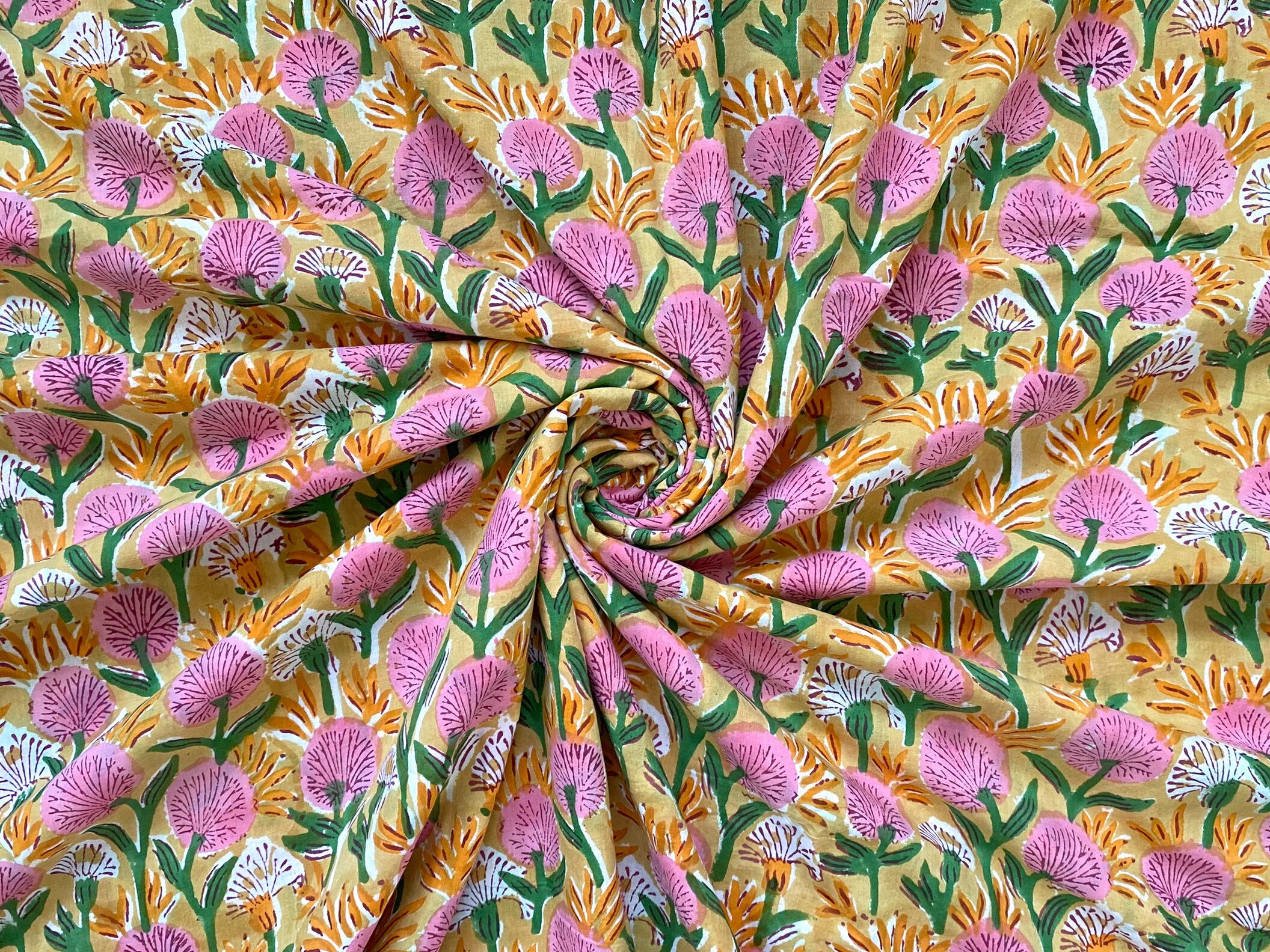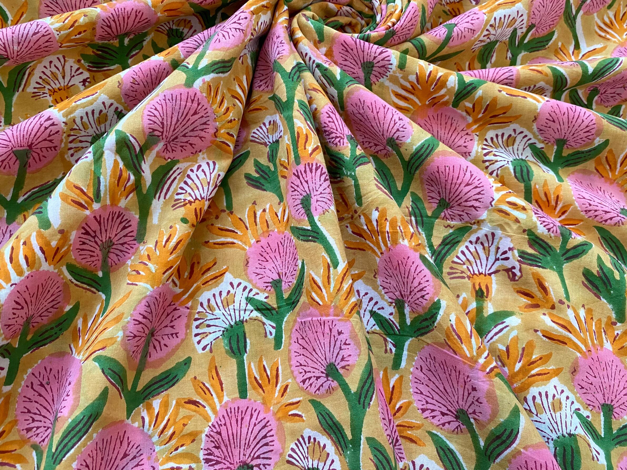 産地インドの伝統的な手法であるハンドブロックプリントを施した、素敵な一枚。
