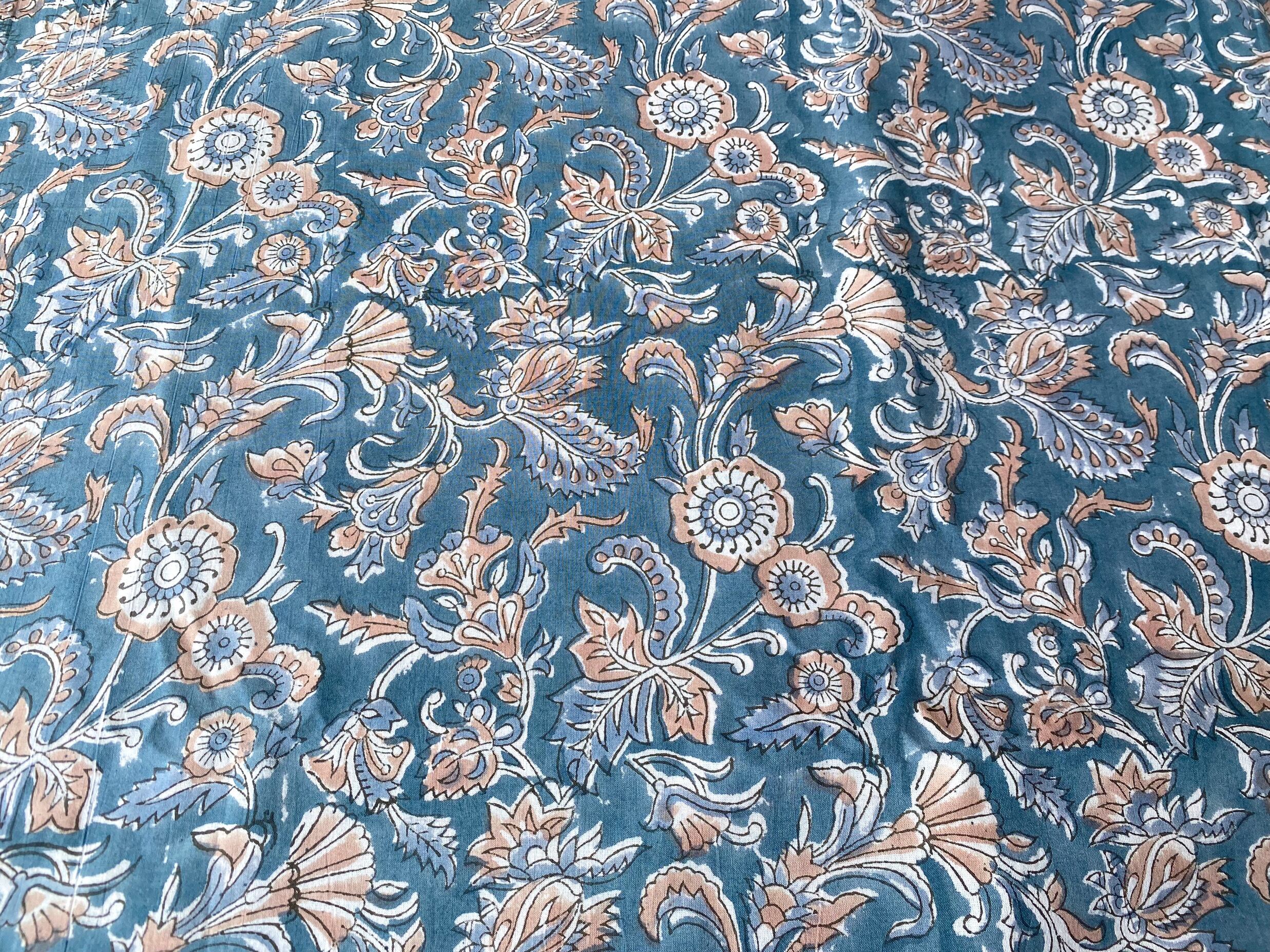 産地インドの伝統的な手法であるハンドブロックプリントを施した、素敵な一枚。