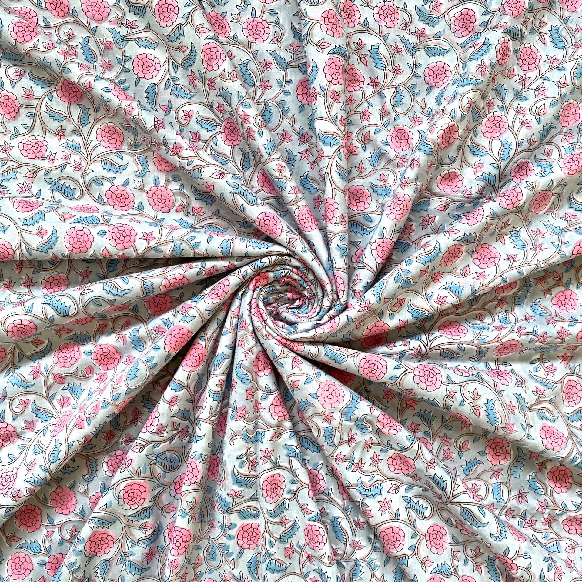 産地インドの伝統的な手法であるハンドブロックプリントを施した、素敵な一枚。