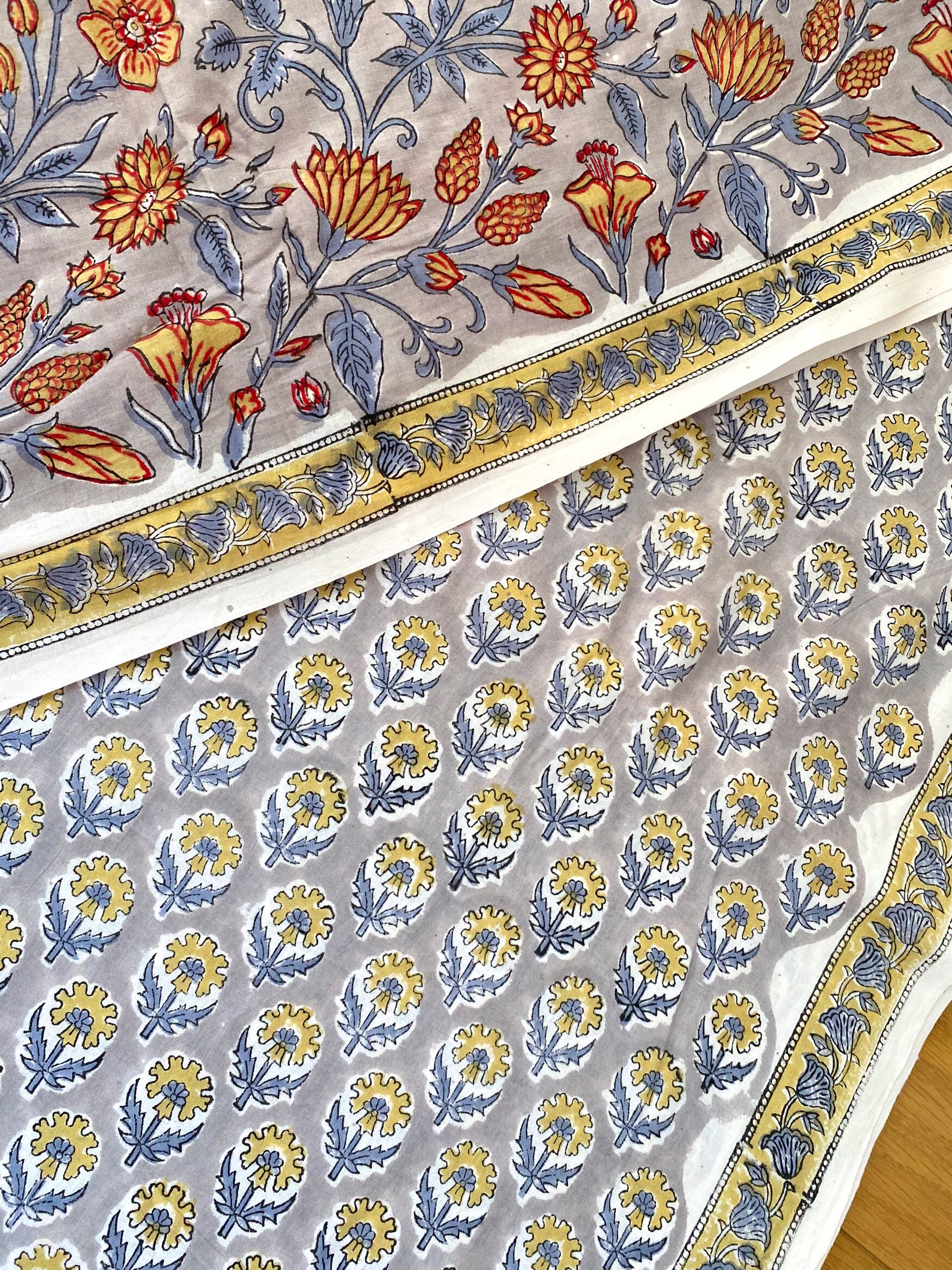 産地インドの伝統的な手法であるハンドブロックプリントを施した、素敵な一枚。