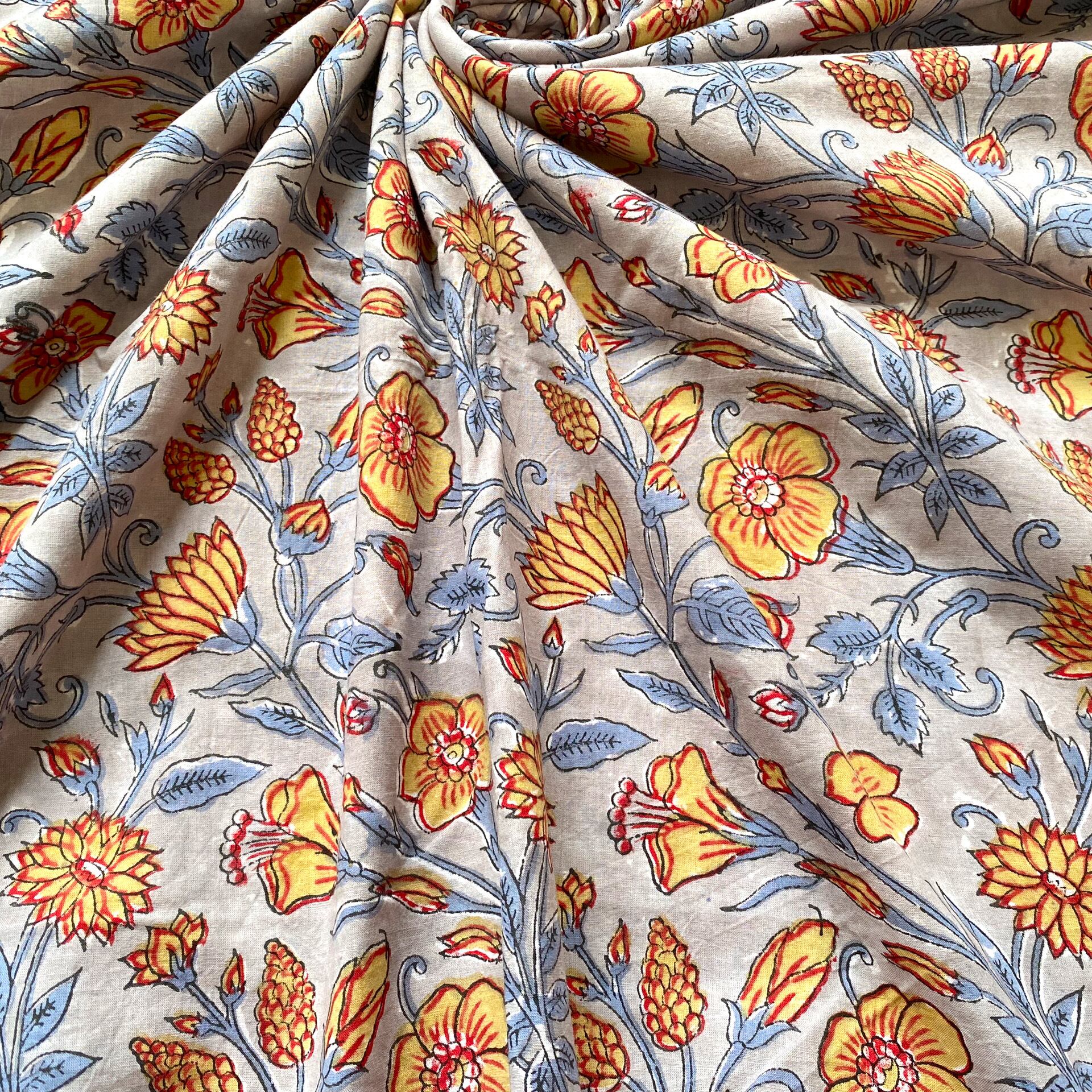 産地インドの伝統的な手法であるハンドブロックプリントを施した、素敵な一枚。