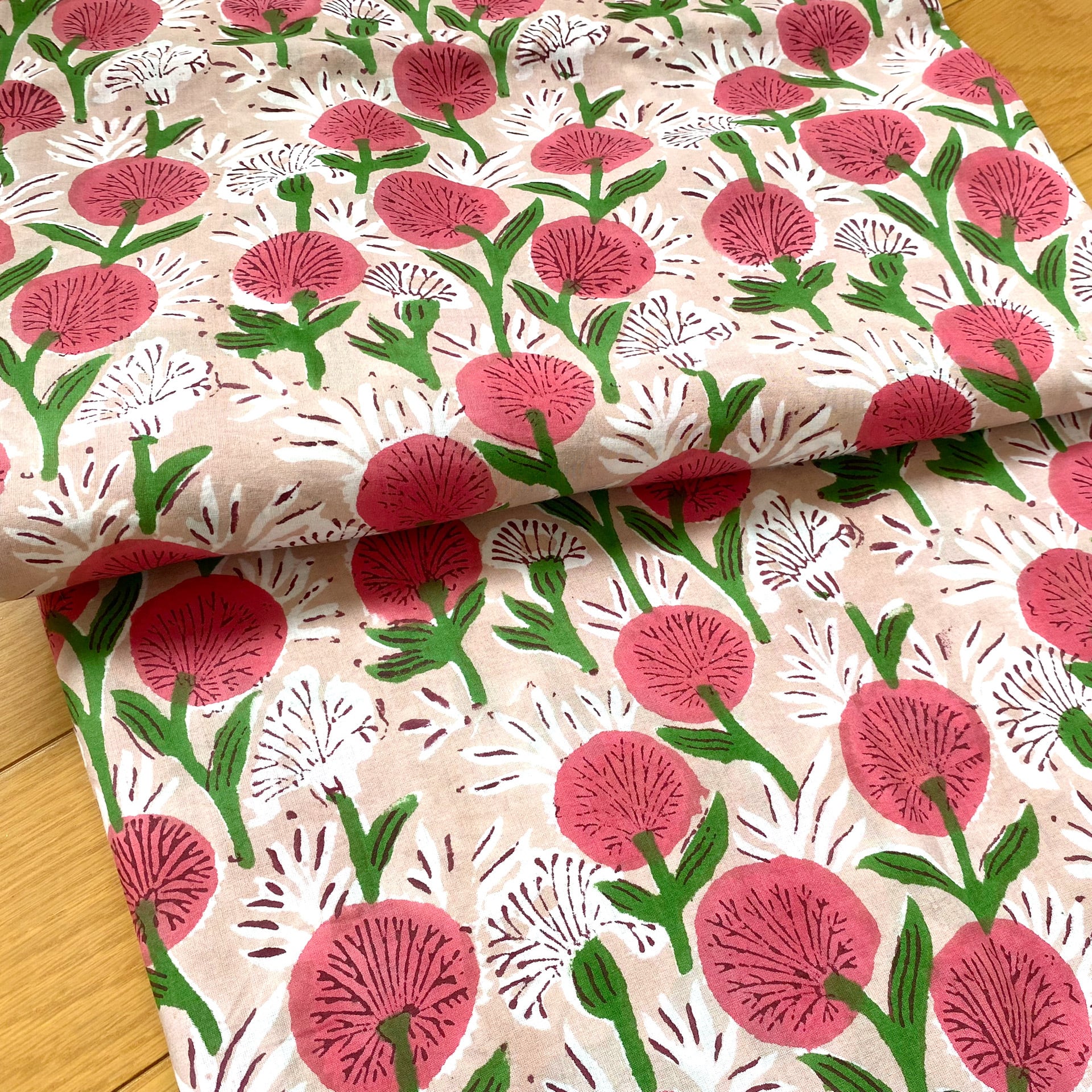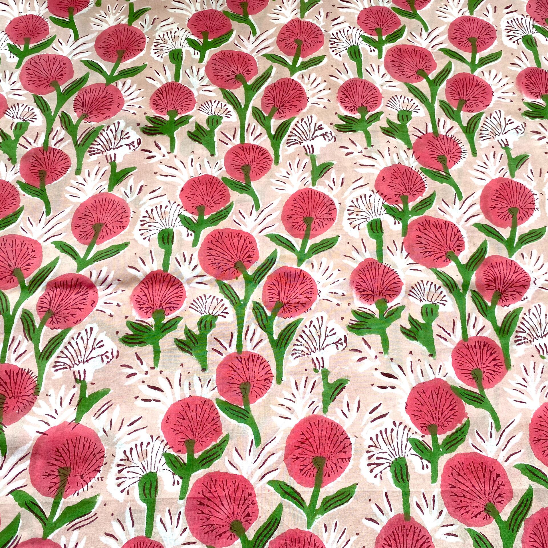 産地インドの伝統的な手法であるハンドブロックプリントを施した、素敵な一枚。